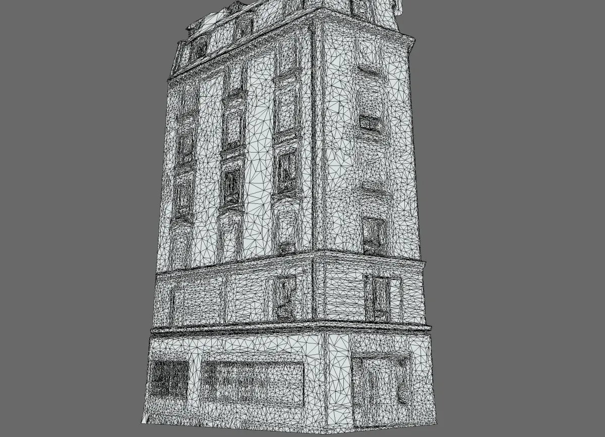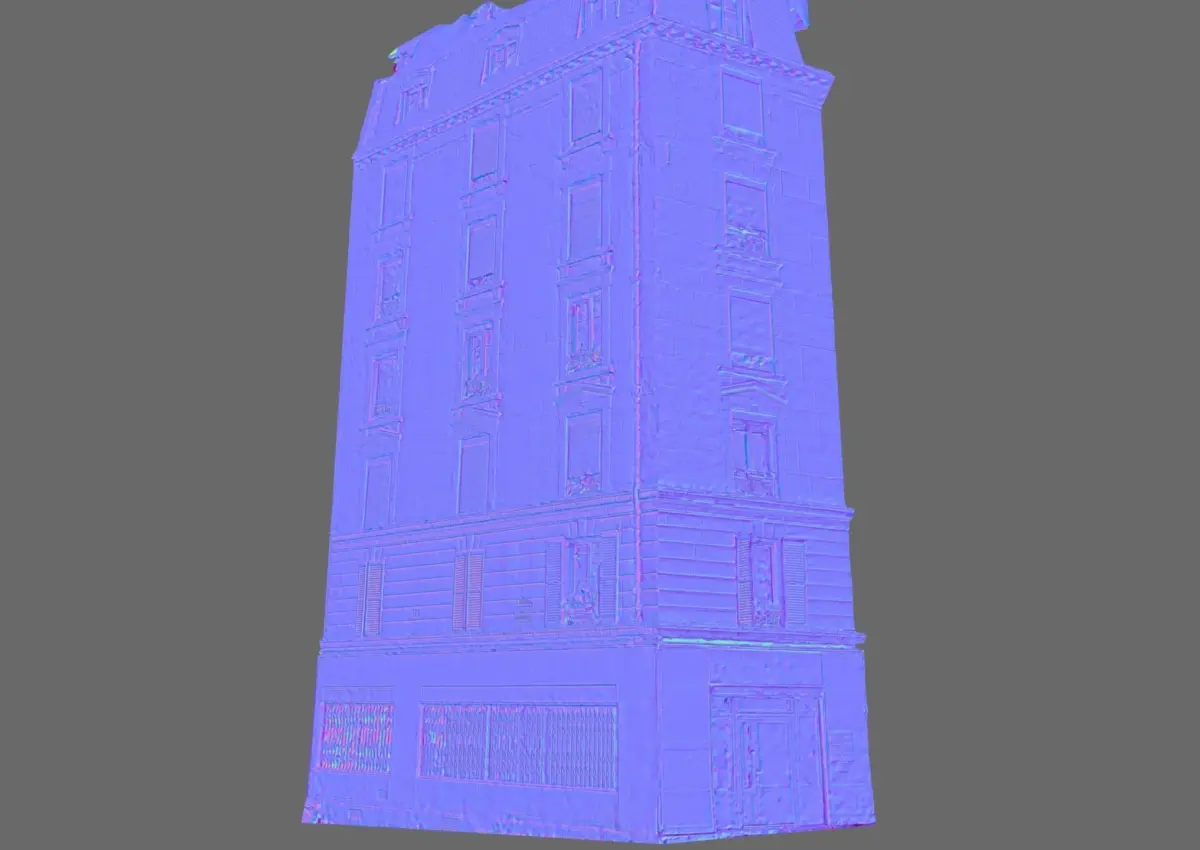 Quick scan of a corner building facade found in Paris made with 150 pictures 50K triangles asset. PBR Asset lowpoly tri. france face paris windows quick walls town facade kitbash parisian cheap photogrammetry asset lowpoly scan city free building street shop download gameready hausman