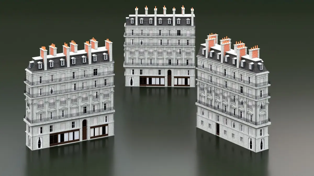 Paris Buildings Collection is a set of 3d models of traditional Parisian architectural structures, showcasing the iconic Haussmann style prevalent in 19th-century Paris.