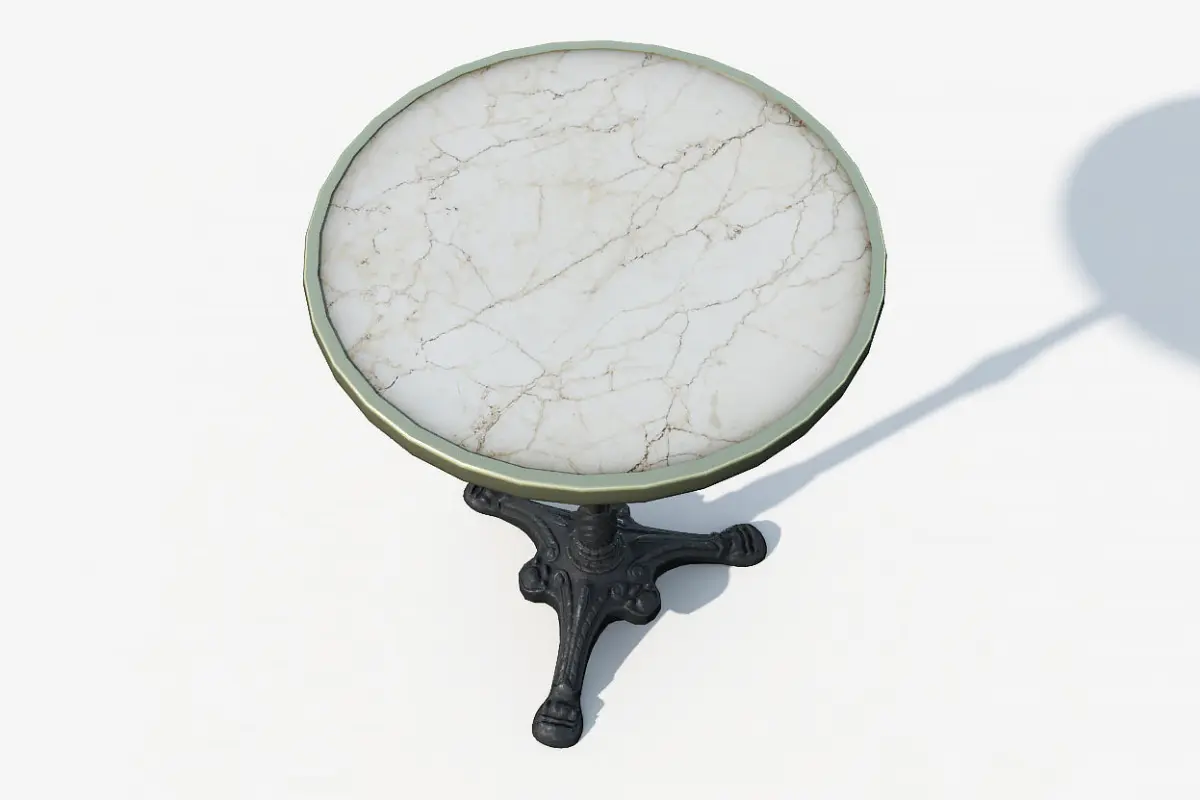 Paris cafe table 3d model. It is best suitable for historic recreations, architectural visualizations, real-time and vfx projects. The model has accurate topology, non-overlapping uvs and correct real world scale in meters.