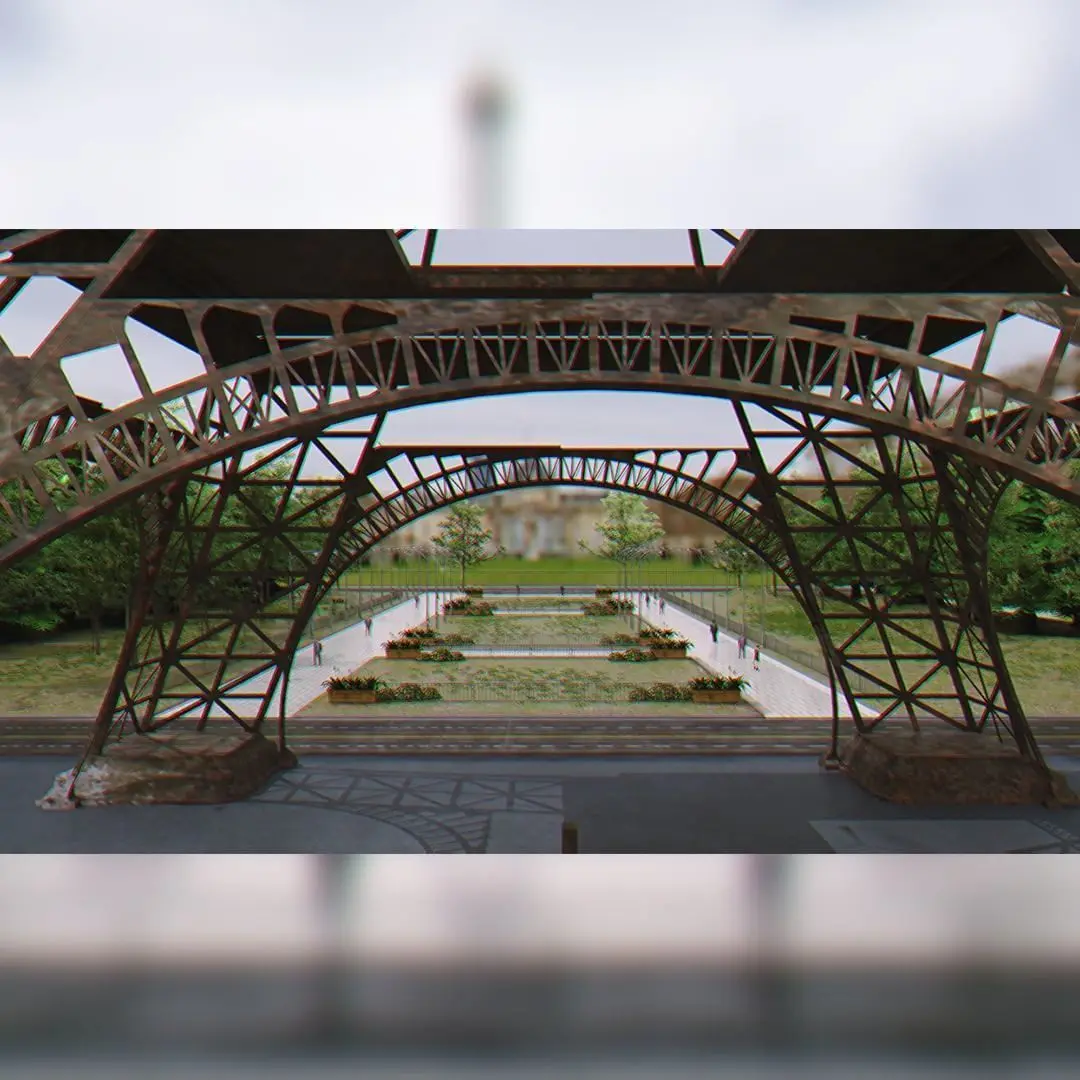 Paris City Eiffel Tower and Park Scene 3D model