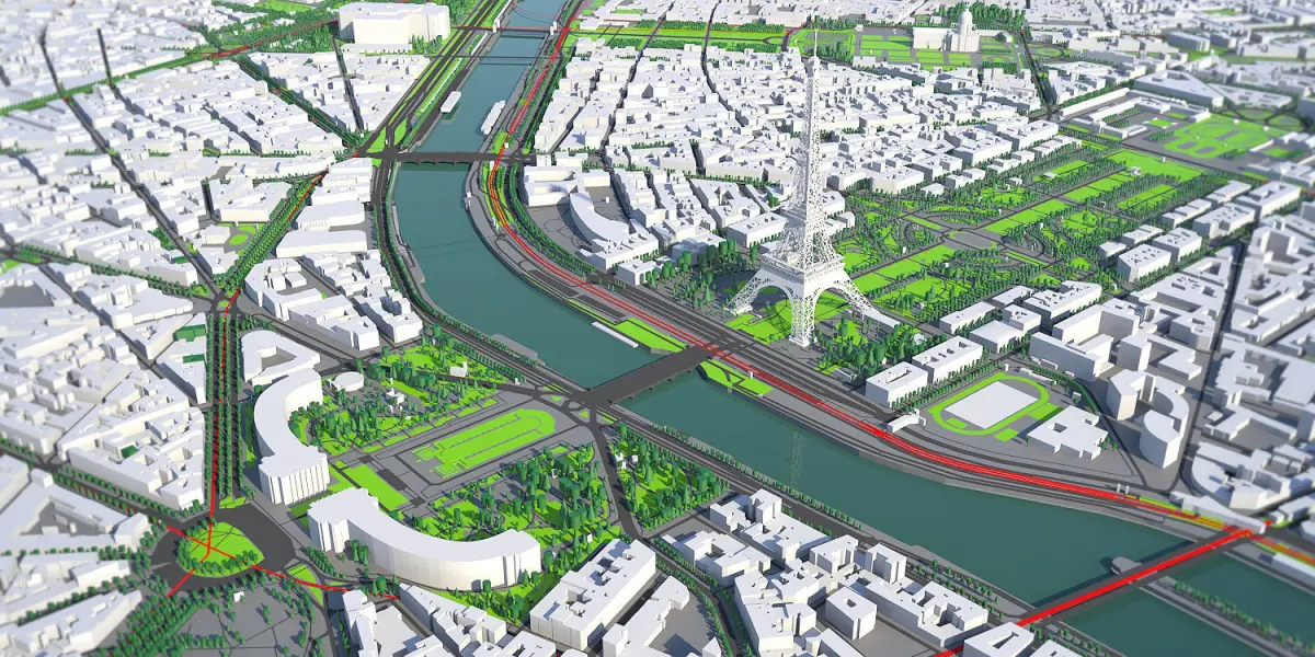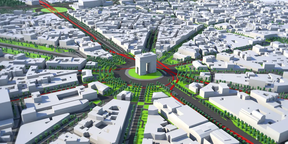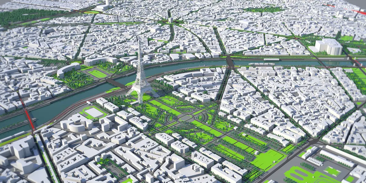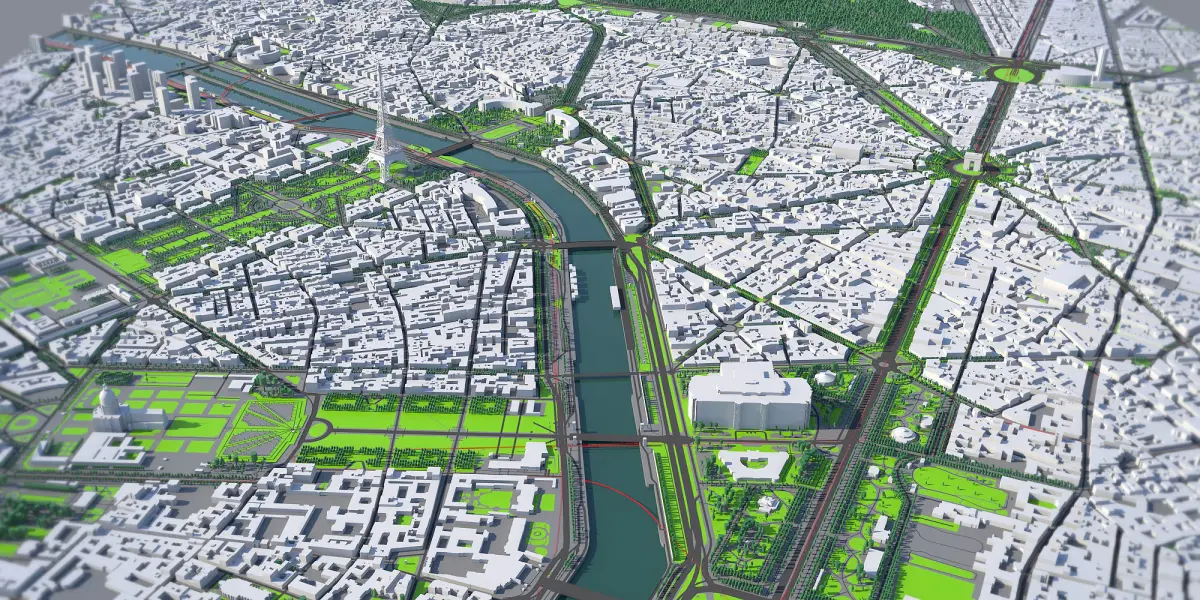 Paris city,Road Network, Railway System, Streets and Buildings 3D model