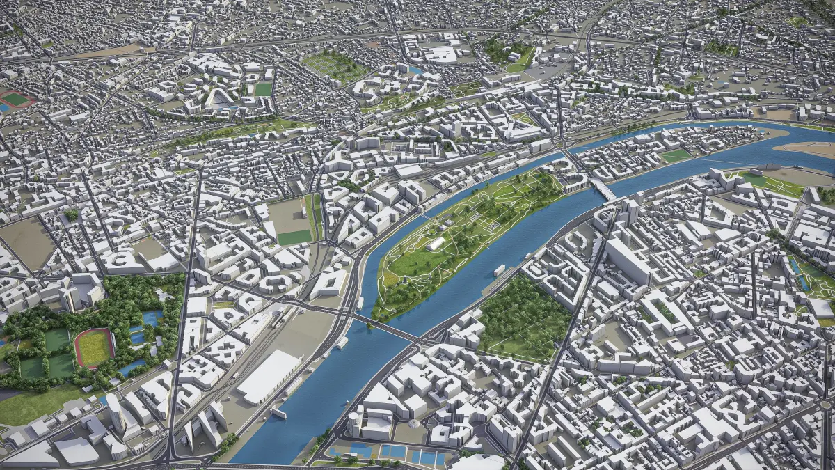 - This 3D city model is georeferenced, exact and accurate to real-world scale