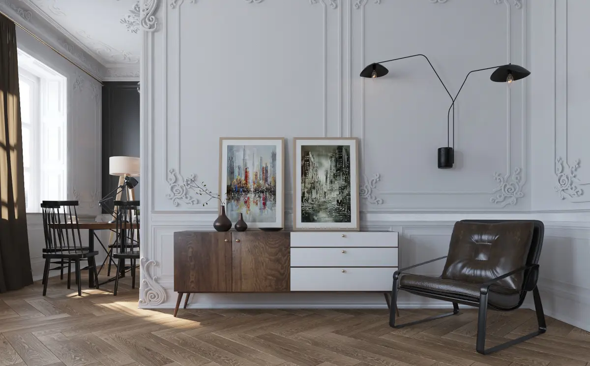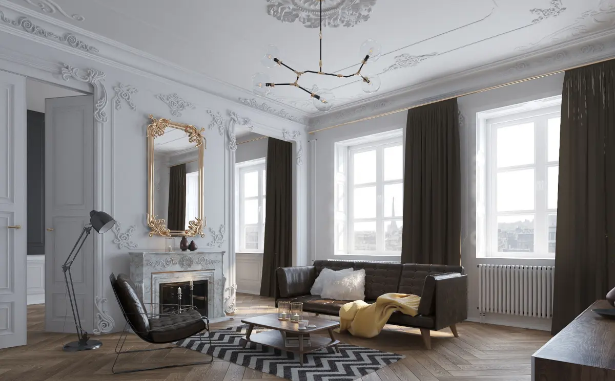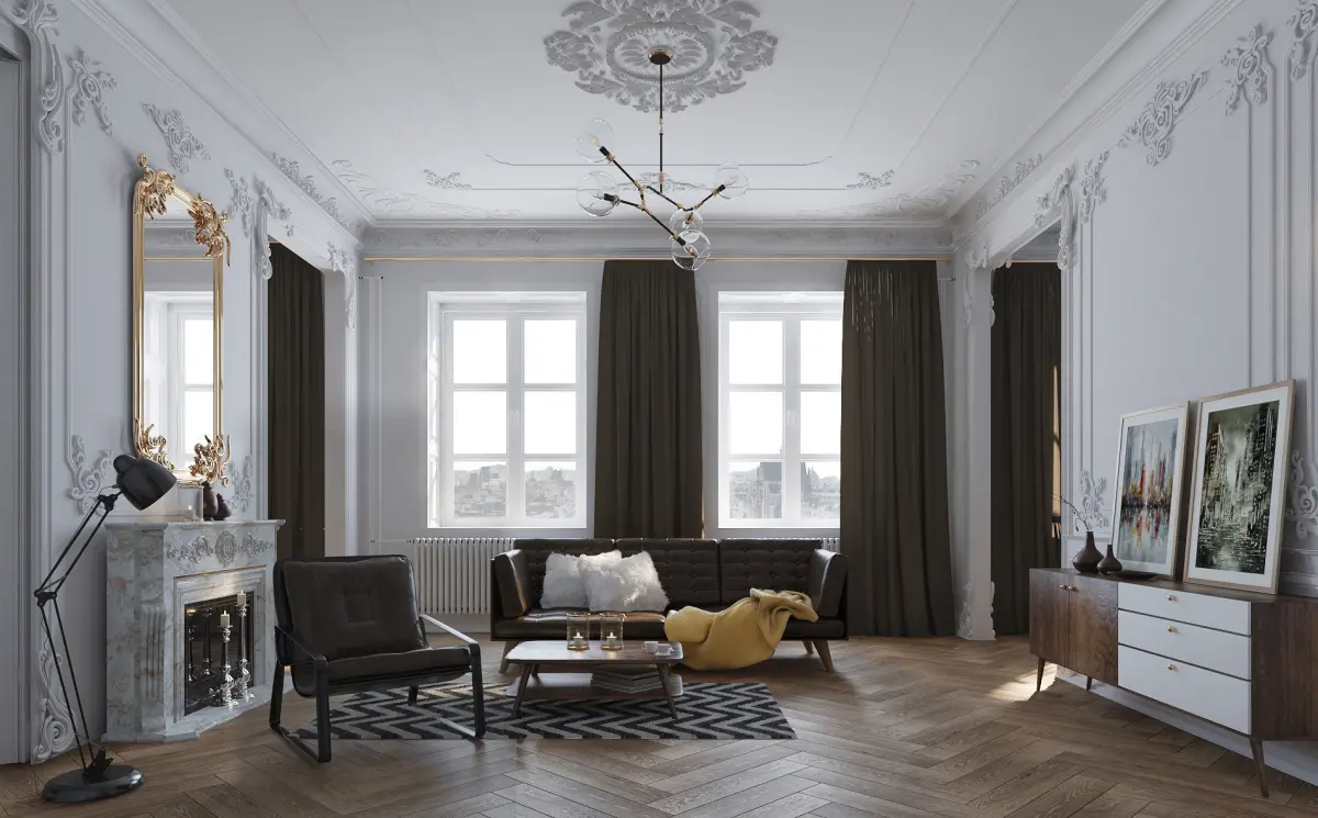 Paris Mid-Century Livingroom, designed and modelled by Visuarch.