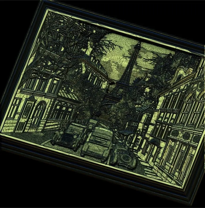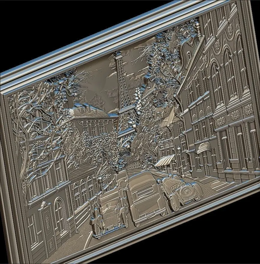 Paris Panno with Classic Cars STL File File for CNC Relief engraving