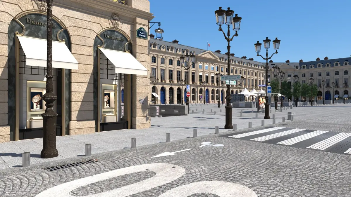 Place Vendome is one of the most famous and luxurious places in Paris. It houses the most prestigious jewelry stores and fashion boutiques in Paris, but also the Ministry of Defense. In this kit the names of well-known brands have been replaced, you can easily import your own. 4 main blocks with display cases and products as well as urban layouts and decor. As well as a fashion show installation