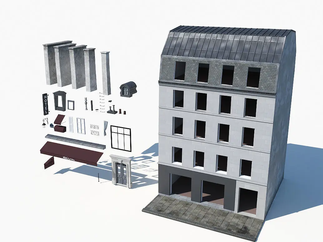Photorealistic model of parisian building built before Haussmann architectural reform. Great background addition for architectural visualization, historical reconstruction, vfx projects. This scene provided in 3ds max/V-Ray and Blender formats. Scene in 3ds max format provided as it is seen in the preview, with lighting and render setup.