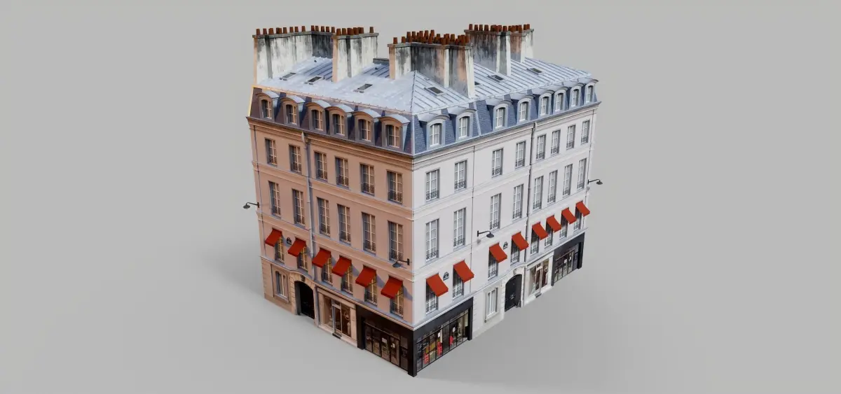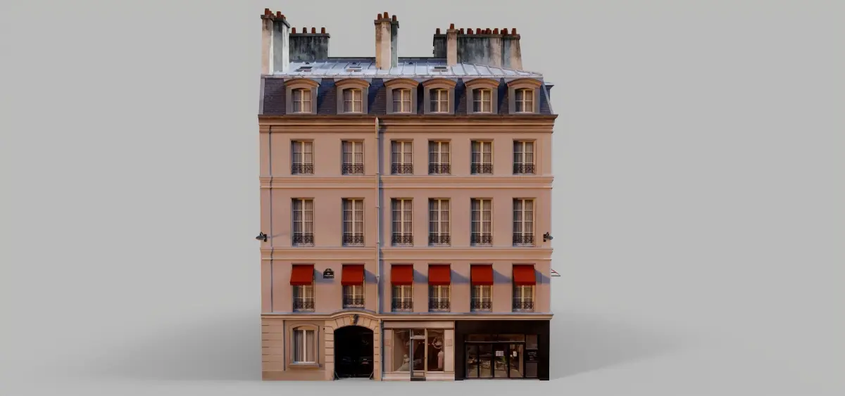 This Parisian building with awningsis a high end, photorealistic 3D model, that is created to help you add the realism to your project.