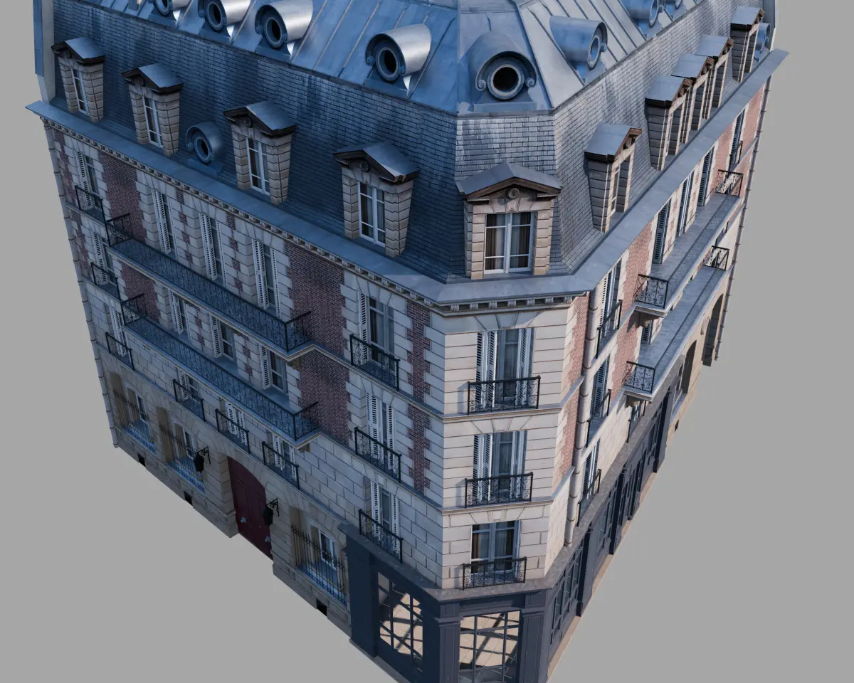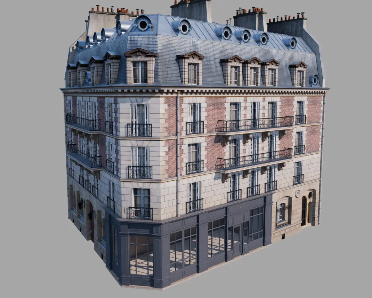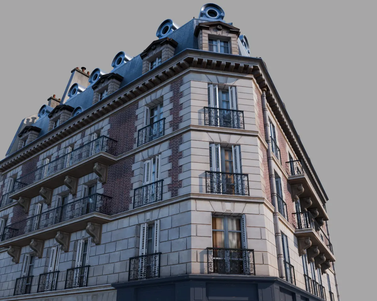 Enhance your urban scenes with this highly detailed Haussmannian corner building, carefully crafted for architectural visualization, games, and cinematic cityscapes. This model captures the elegance of classic Parisian architecture with realistic materials, modular design, and optimized geometry.