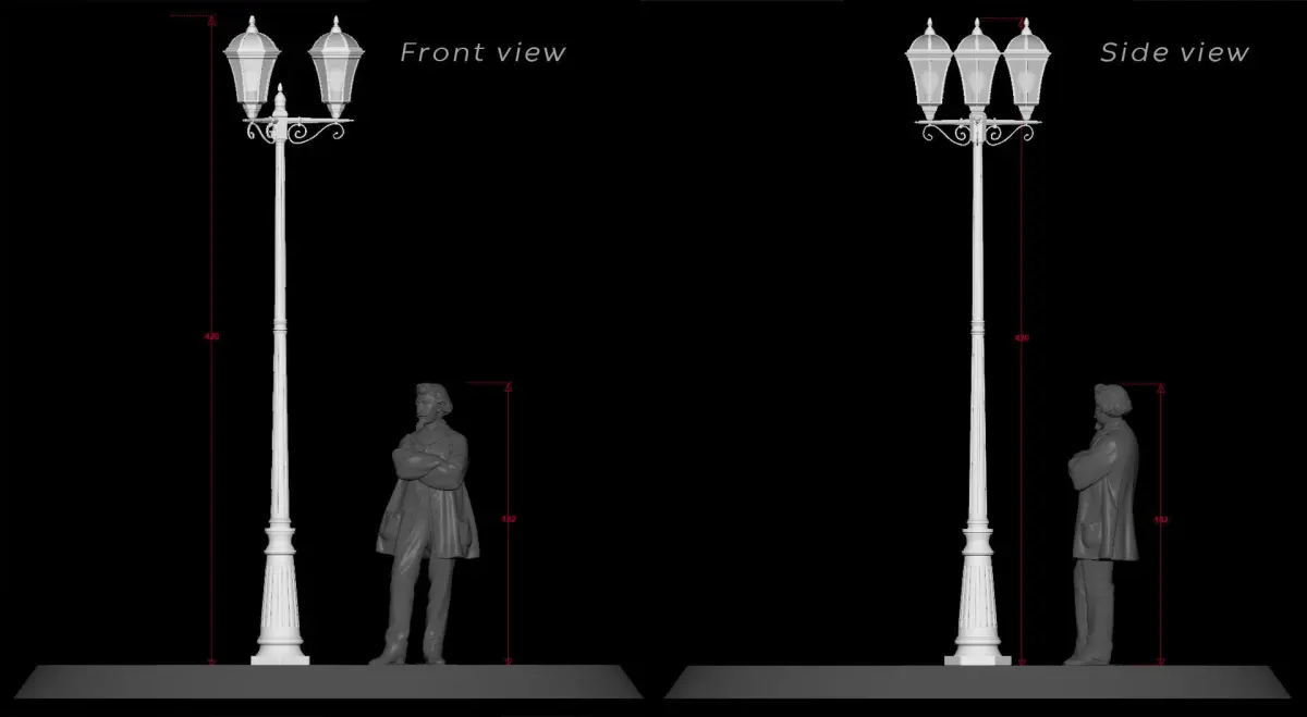Model is built to real-world scale (420cm).
