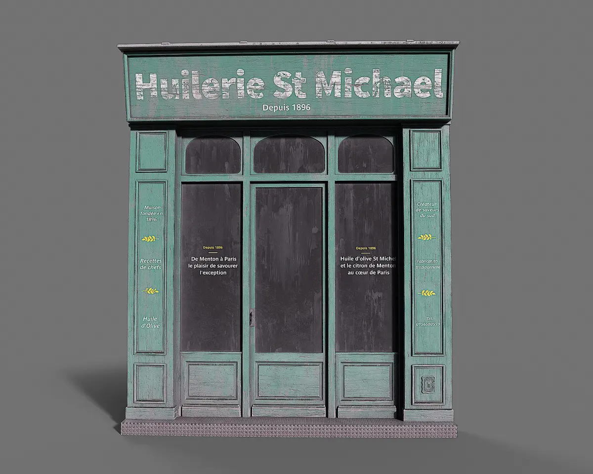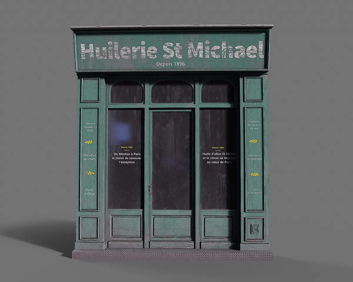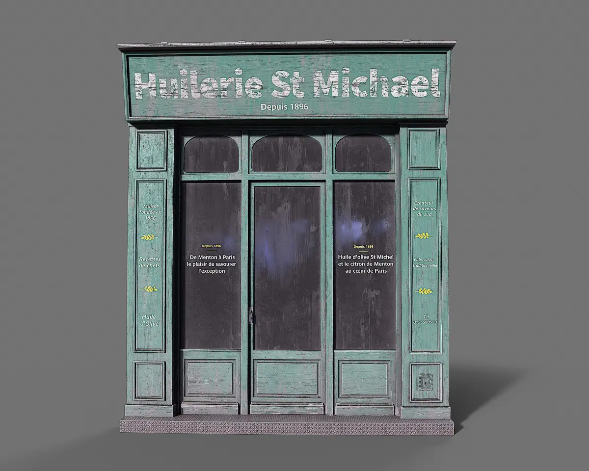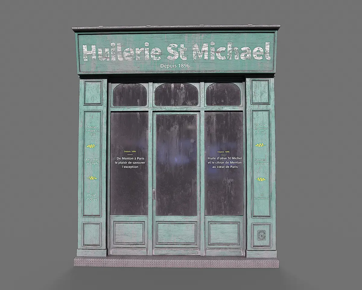 Bring the charm of Parisian streets to your projects with this highly detailed 3D model of the vintage storefront Huilerie St. Michael. Perfect for architectural visualization, game environments, or animation scenes, this model captures the authentic look of a classic French shopfront.