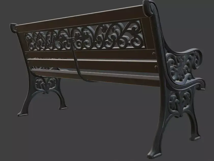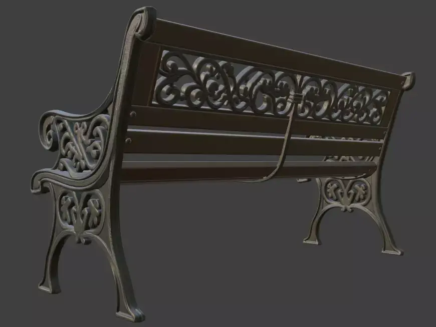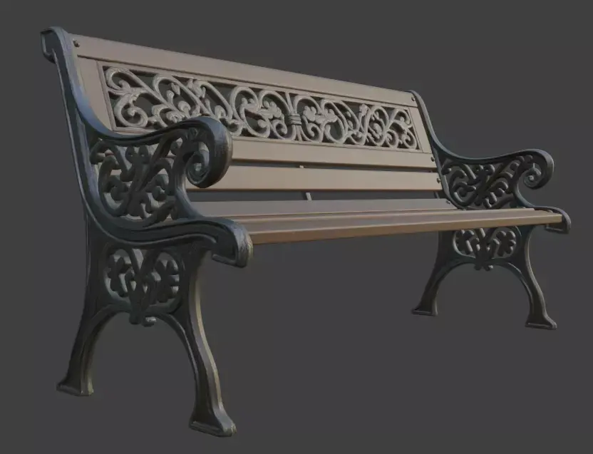 Realistic cast iron frame with ornate decorationsTextured wooden planks for authentic lookLow-poly friendly for real-time applicationsReady for subdivision if neededSuitable for close-up renders and distant views