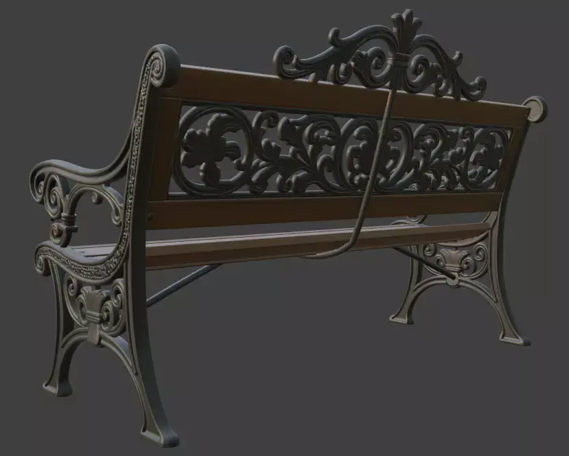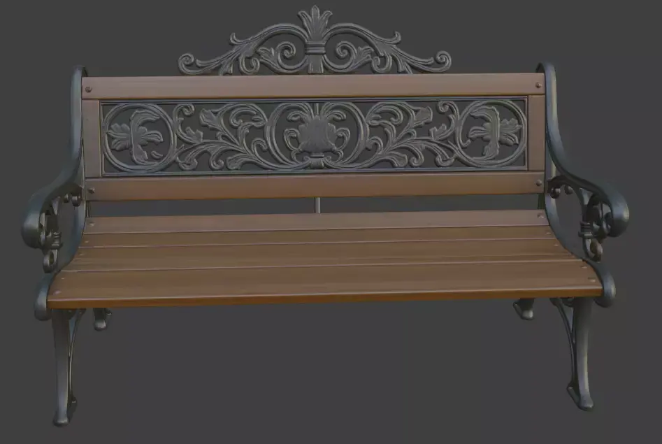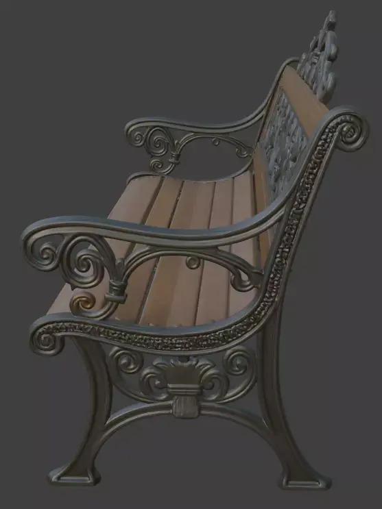 Realistic cast iron frame with ornate decorationsTextured wooden planks for authentic lookLow-poly friendly for real-time applicationsReady for subdivision if neededSuitable for close-up renders and distant views