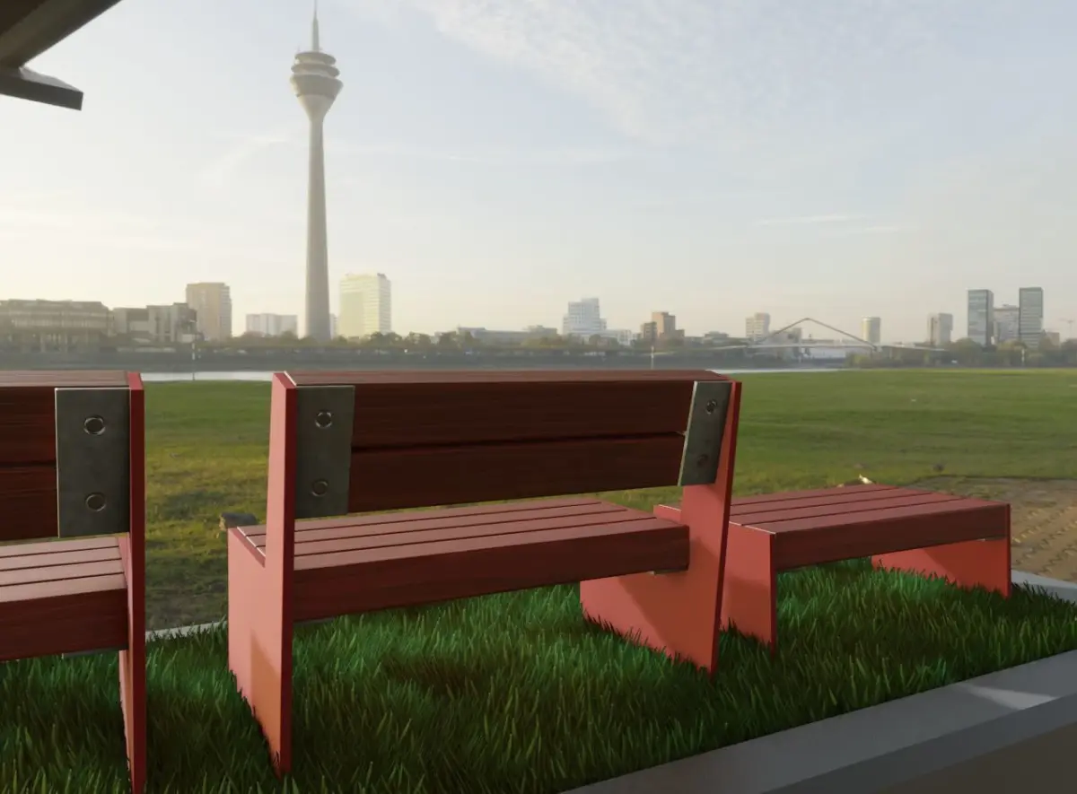 Here is the red painted and low poly version of the park bench [8] in three different versions.