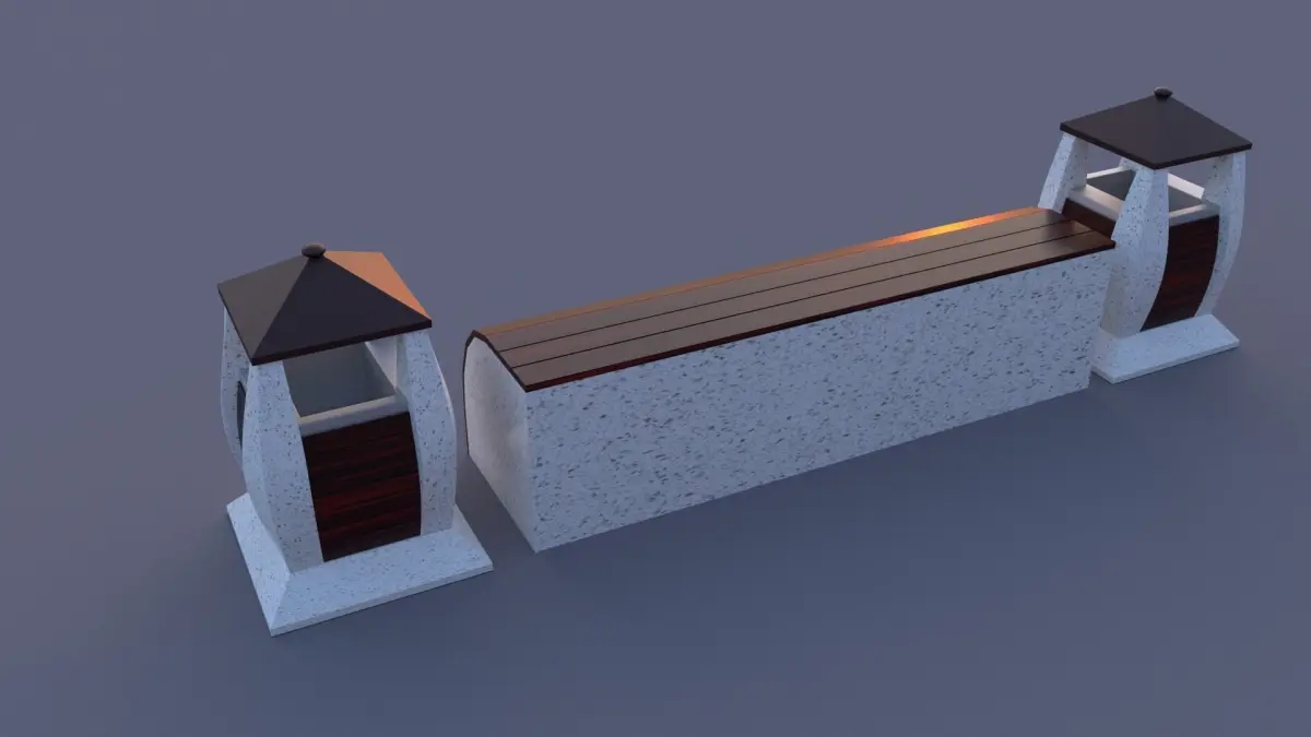 Park bench and rubbish bin