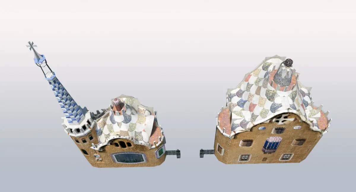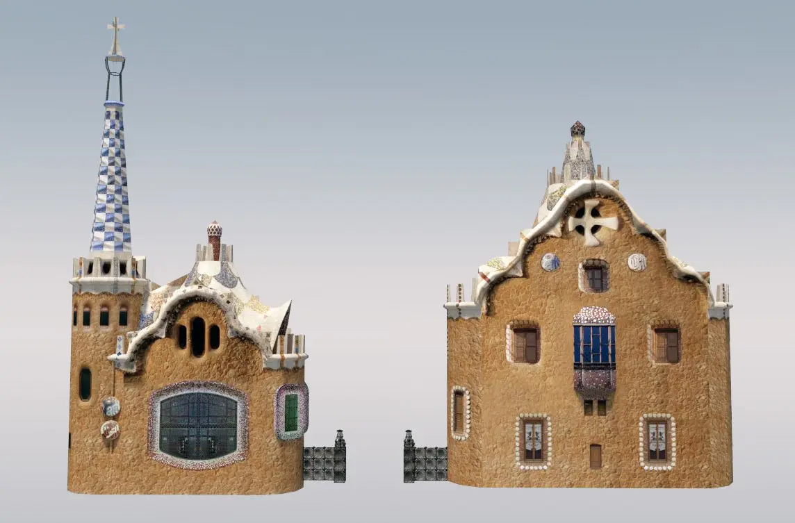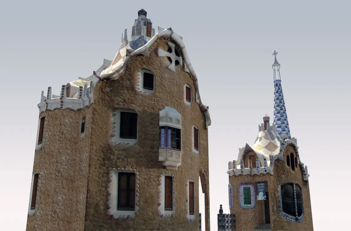 Famous Barcelona Park Guell entrance towers, by Antoni Gaudi. Modeled for the purpose of Google Earth 3D objects Layer, back in 2011. They are very low and simplified geometry so don't expect high level of details or precision. Good for gaming, cityscape scenery etc.
