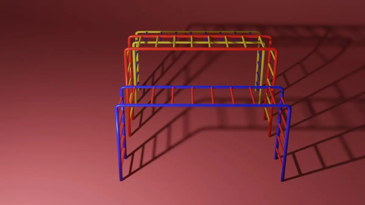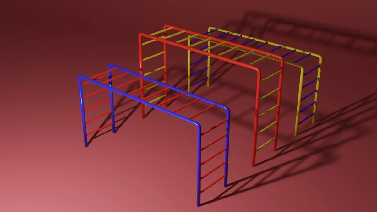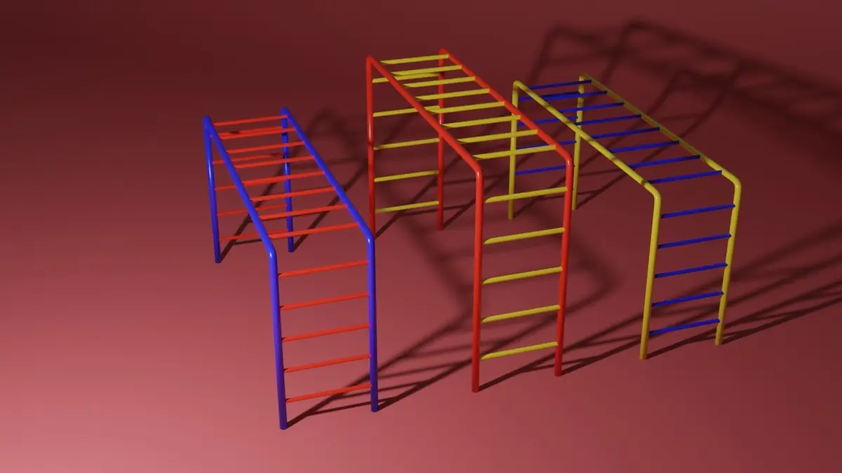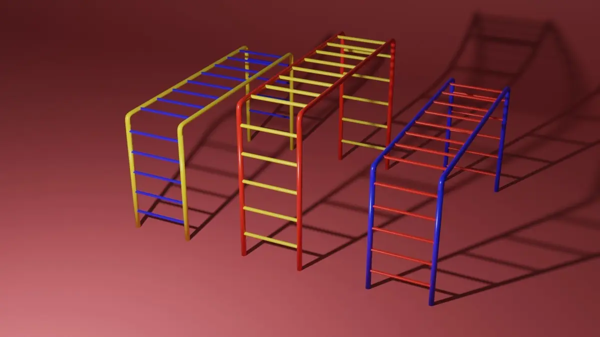 Playground ladders. It is made out of painted metal, the colors are blue, red and yellow. A perfect toy for any park or playground.The model is made in Blender 3.0 and rendered in Cycles.