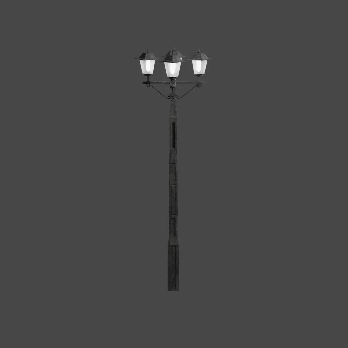 - attached PBR Materials: LampPostMetal1 (1k to 8k texture maps; Albedo, Roughness, Normal, Displacement, Metallic and Ambient Occlusion)