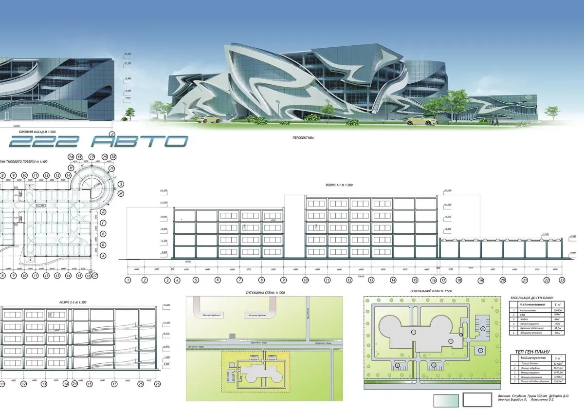 Here is presented the parking concept project for 222 vehicles. Developed for different landscape types with usage of bionic design elements. The unique line execution allows integrating it both in a modern city block and as a separate element in suburban area. It’s a perfect combination of progressive construction thought and functionality.