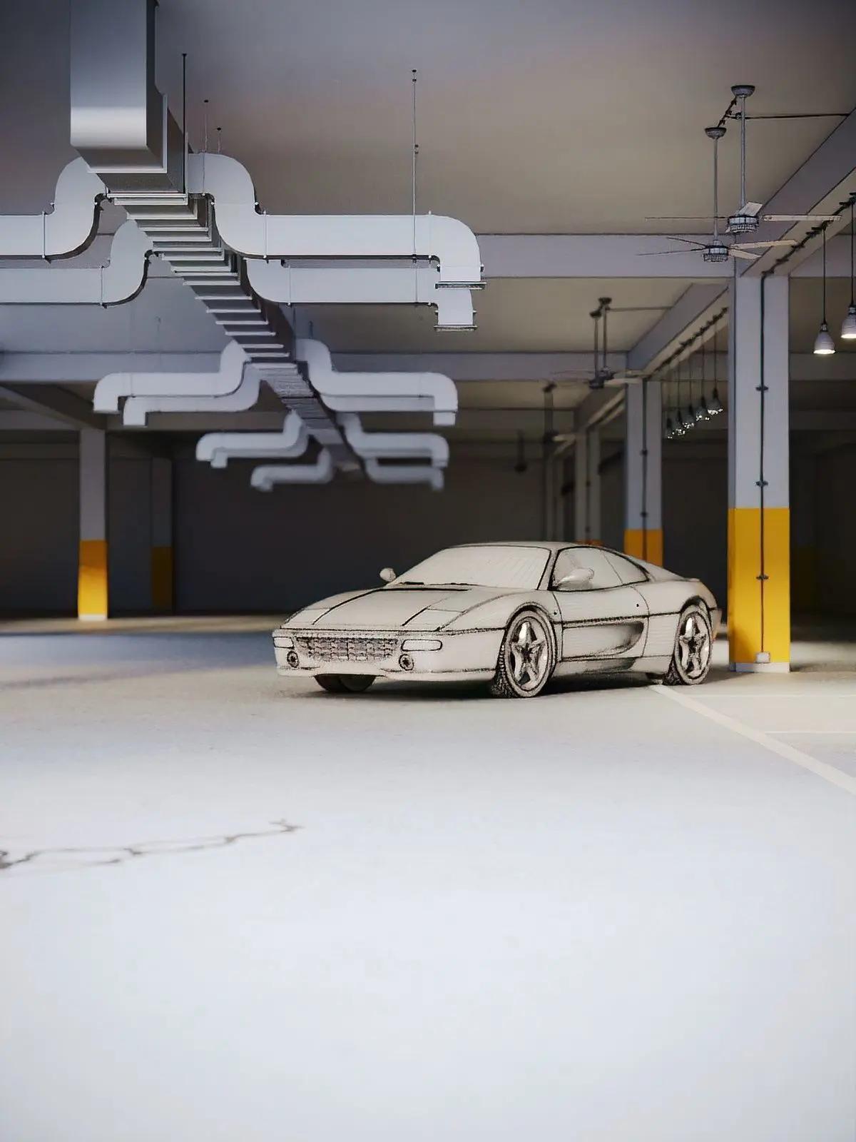 HomeCatalogParking garage with Ferrari sports car 3D model 3D model