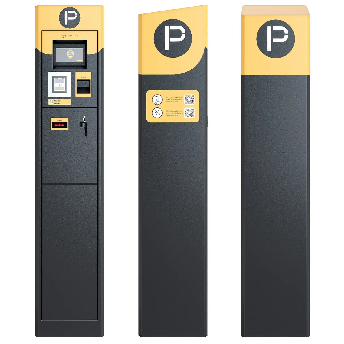Perfect for filling the exterior of paid parking spaces and fits well into the modern urban environment in the daytime and in the evening.