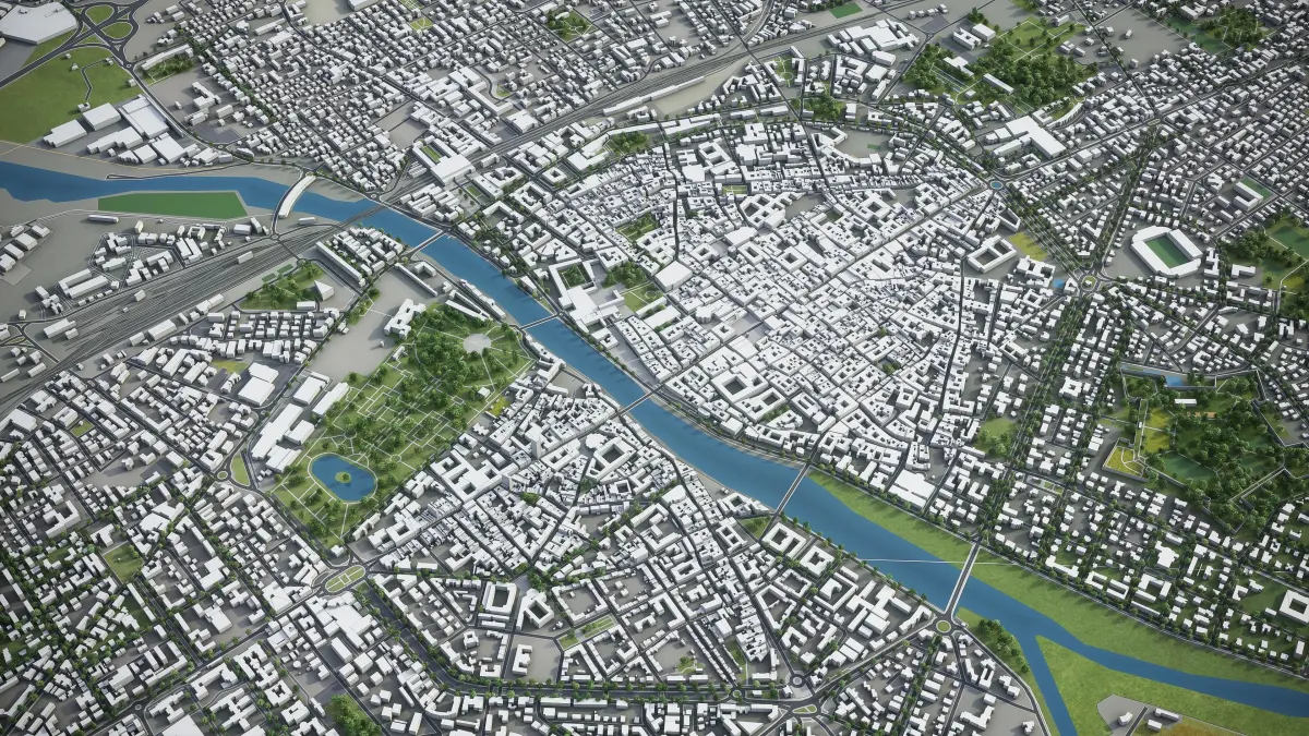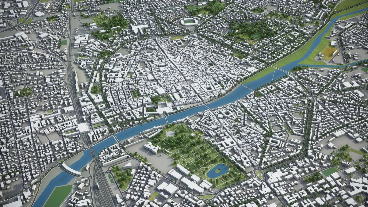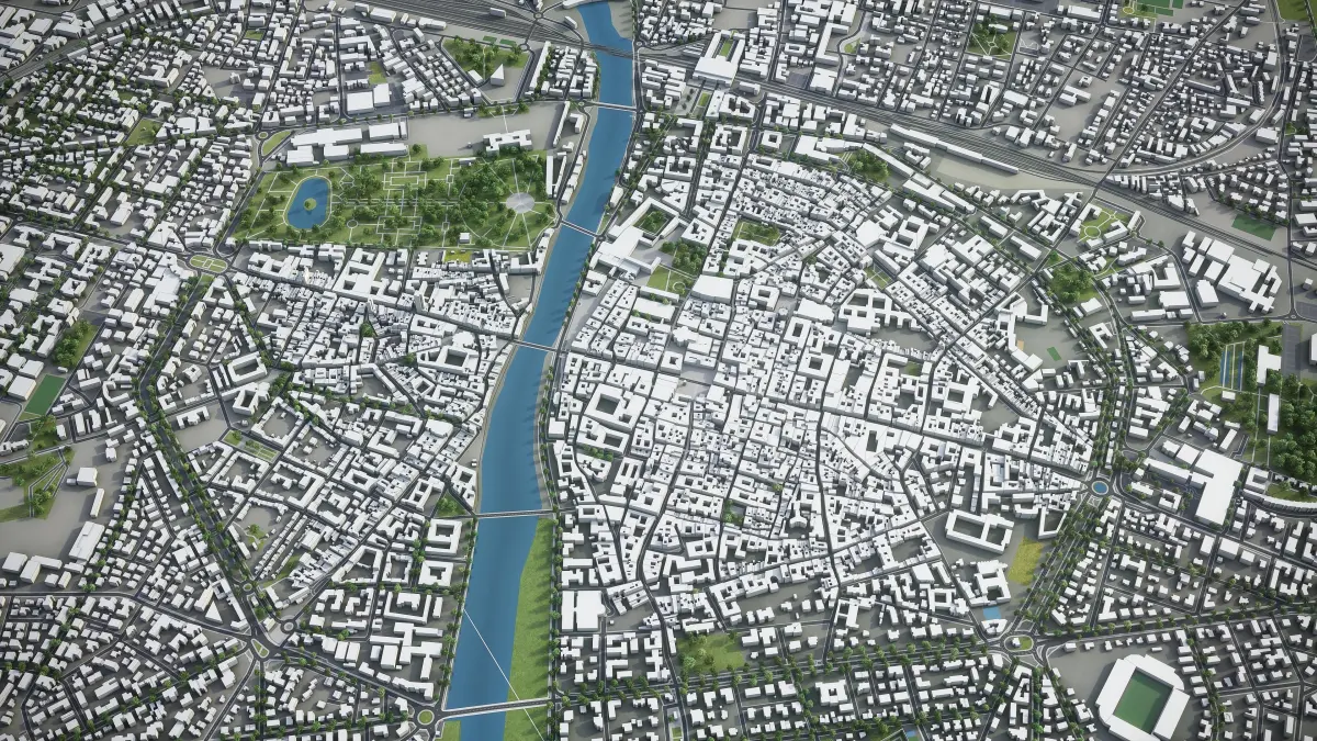 - Full city extents up to 100 x 100 km — or crop to an area of interest for better format compability and scene performance