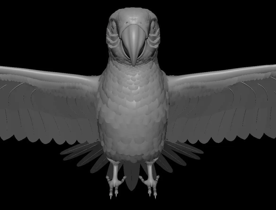 Parrot model done in maya with proper mesh flow with uvs