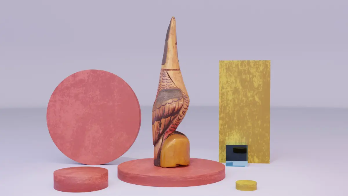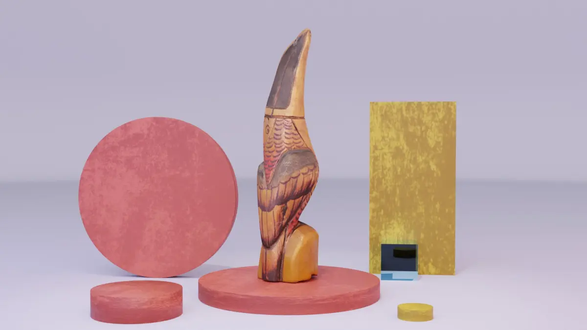 This is a photorealistic 3D model of the wooden toucan parrot.