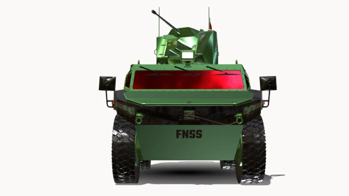 A carroceria do veículo é feita de material balístico, que fornece proteção contra minas e explosivos improvisados.