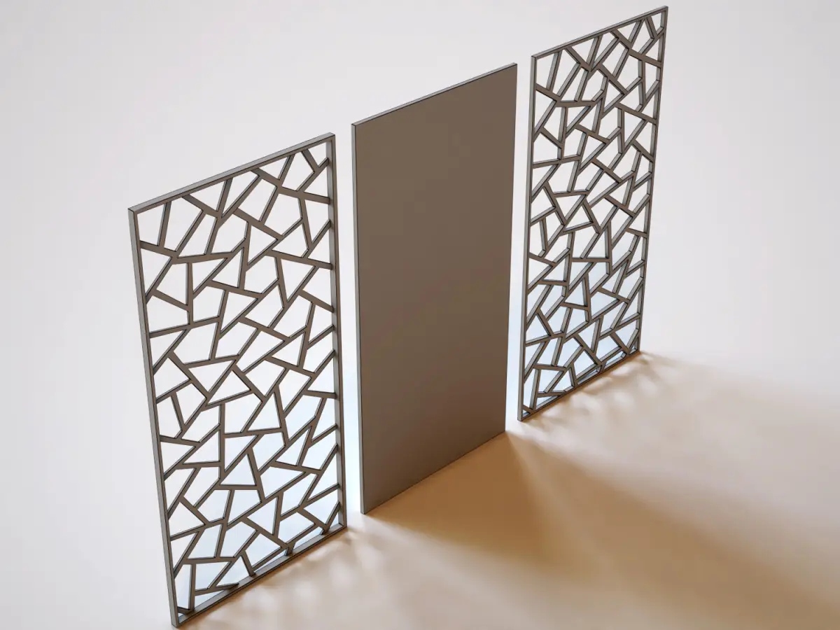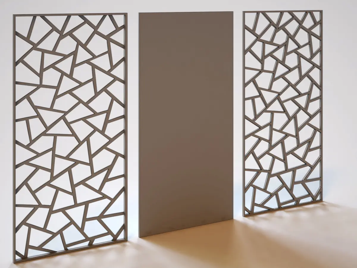 The rar file of the model includes 3 decorative partitions with a geometrical pattern(one single design) shown in different ways.Partition Size: