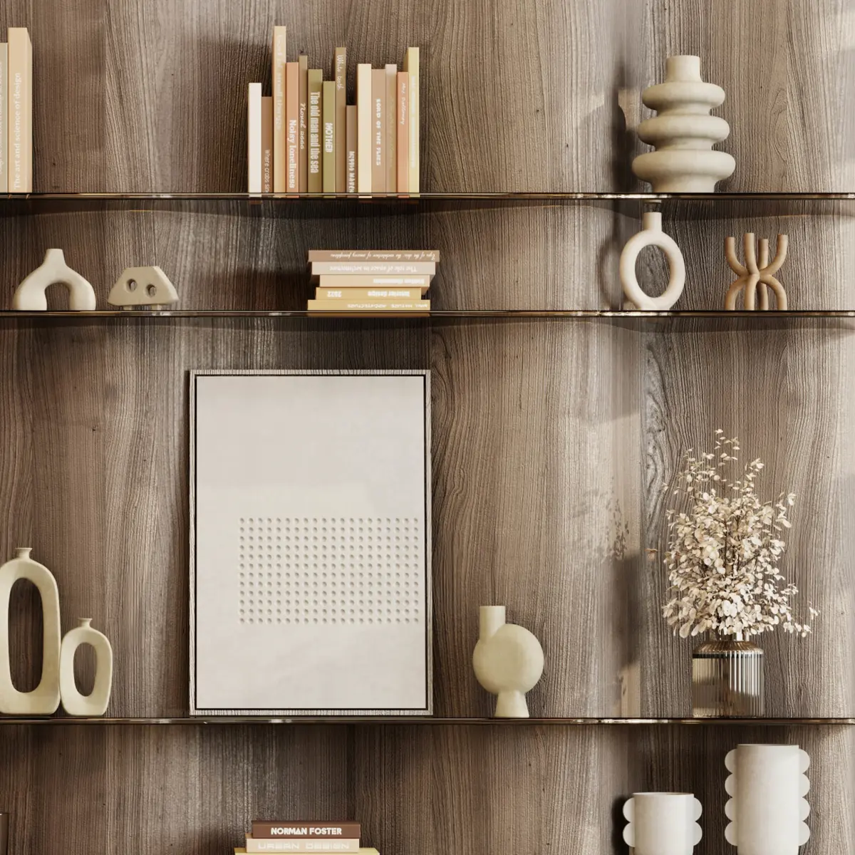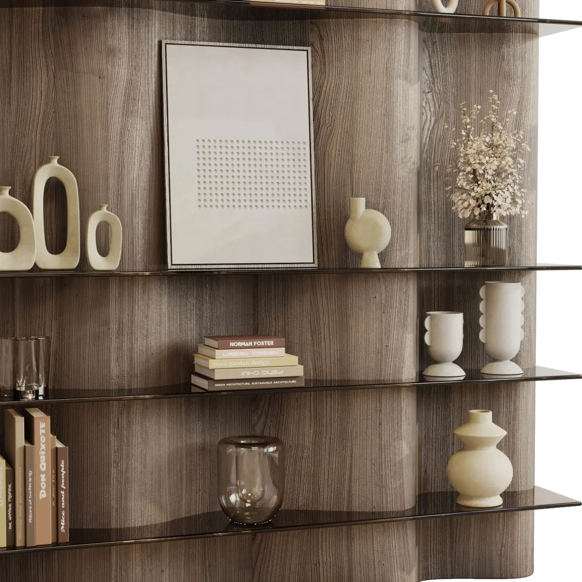 HomeCatalogPartition Wave Wooden Shelves Decorative With Book and Plant 19 3D model