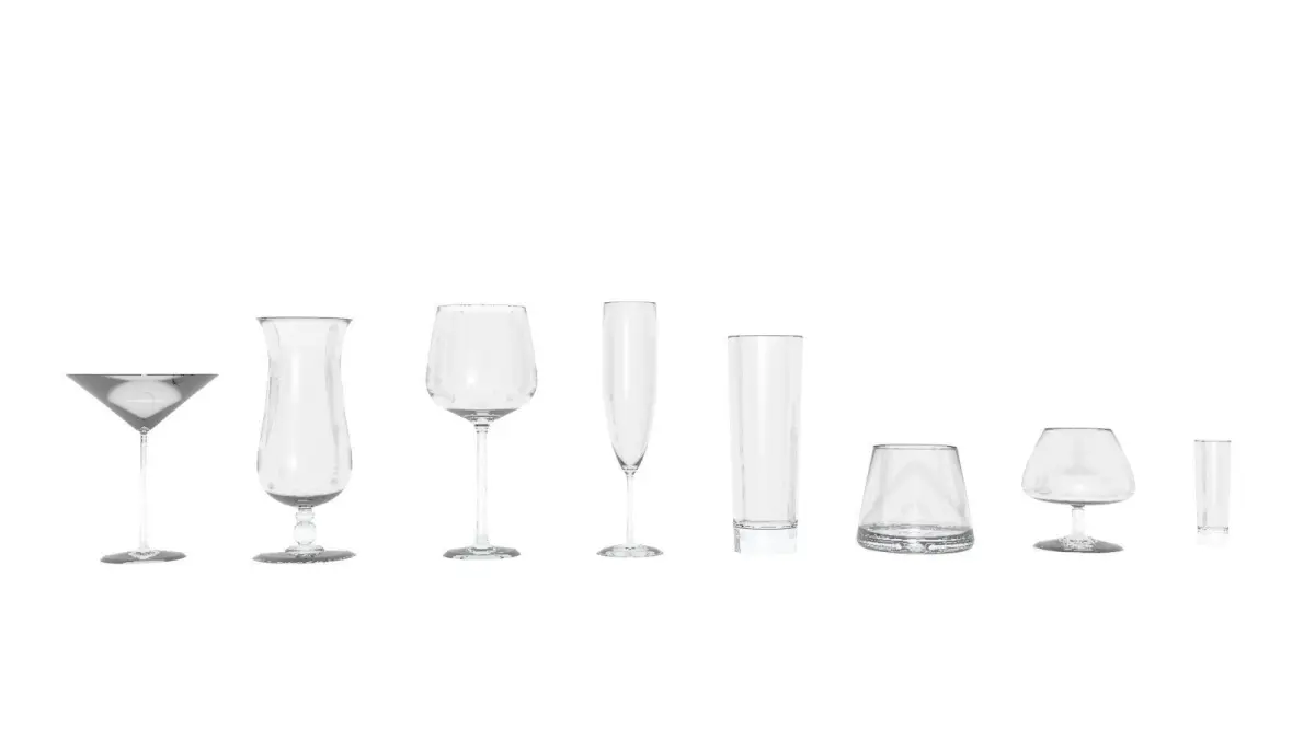 You will see whole** glassware models for different types of Cocktails/Wine**