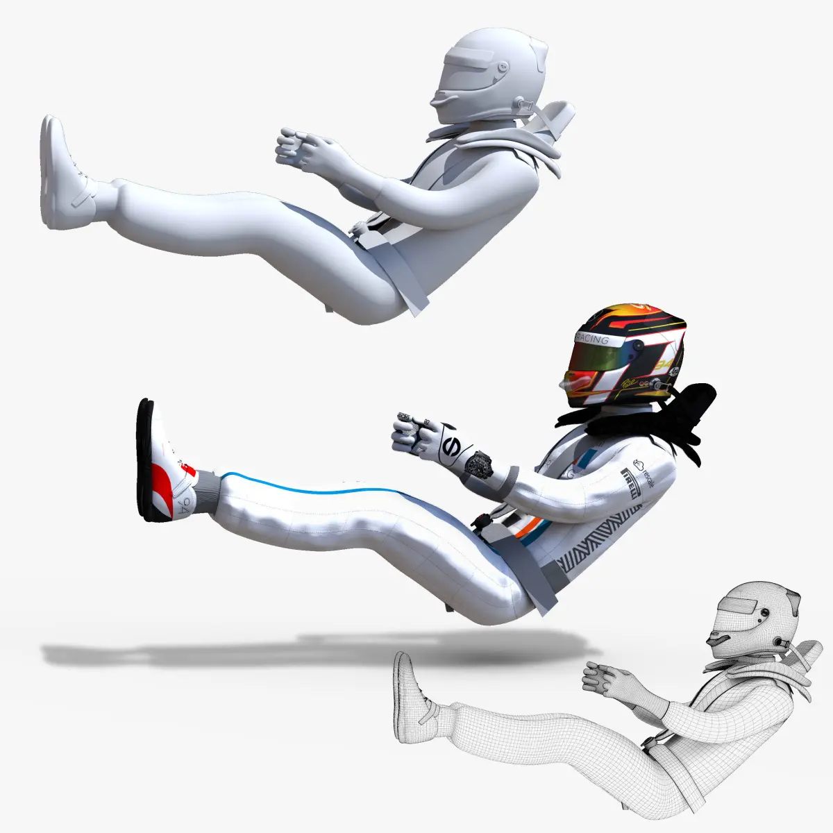 The model is completely ready for use visualization in maya. For low poly model simply press 1 and for the high resolution press 3. In Cinema4d go to function menu and subdivide. In 3dmax meshsmooth In the low poly each poses: Poly count : 9320Vertex count : 9836In the high poly: Poly count : 178656Vertex count : 180679Textures included. Each texture is in jpg format and have a 4K texture resolution for high quality Color texture, displacement texture,bump texture and normal texture are included. The files are obj, fbx, dae,max, mb ,c4d and 3DS. In formats c4d, 3ds, obj ,dae,max and fbx model exported to standard materials (textures), not contain mental ray shaders. files with the model does not contain extraneous or hidden objects (lights, cameras, etc.) Included rigging and constrains, blend shapes and driven keys only in the maya format. original file format maya render in linear sRGB