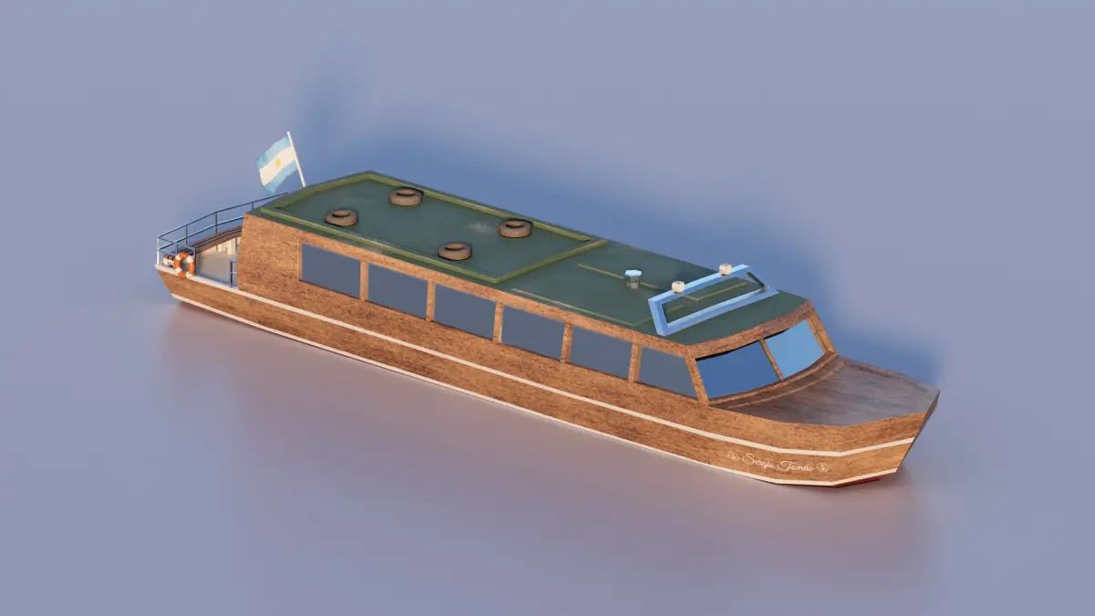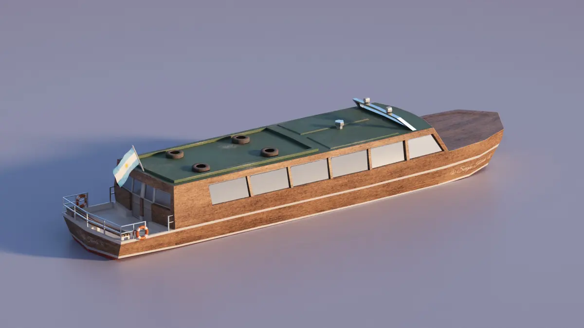 This 3D model represents a passenger ferry boat (also known as lancha colectivo) commonly seen in river regions such as the Paraná Delta in Argentina. It’s ideal for architectural visualizations, simulations, games, or animated projects with a nautical or urban setting.