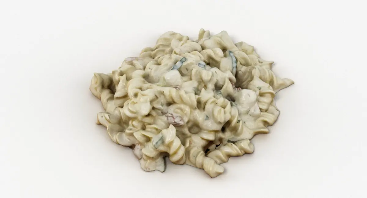 A DETAILED 3D MODEL OF PASTA IN A CREAMY SAUCE: