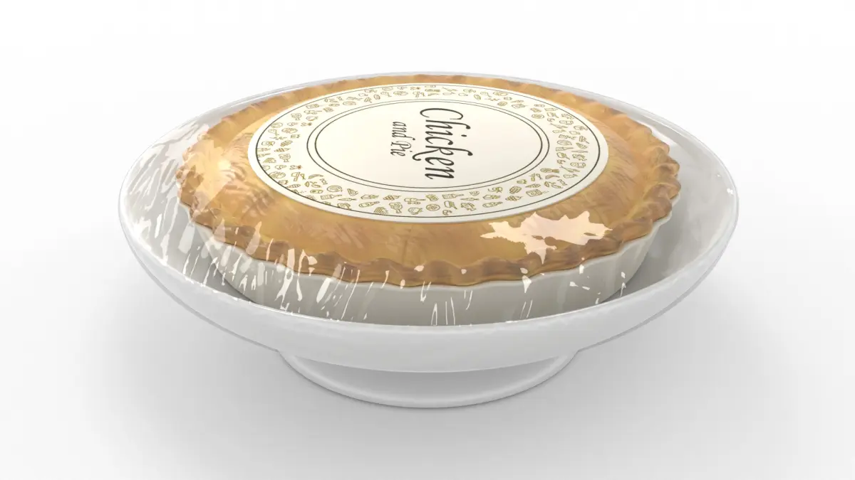 Chicken and Mushroom Pie: Treat yourself to the comforting taste of our Chicken and Mushroom Pie. Encased in a golden-brown pastry, this hearty pie is filled with tender chunks of chicken, earthy mushrooms, and a rich, creamy sauce. The pie comes in a sturdy, rectangular box, adorned with an image of the pie and the words Chicken and Mushroom in elegant script. The box also includes a helpful serving suggestion and cooking instructions, ensuring a perfect pie every time.