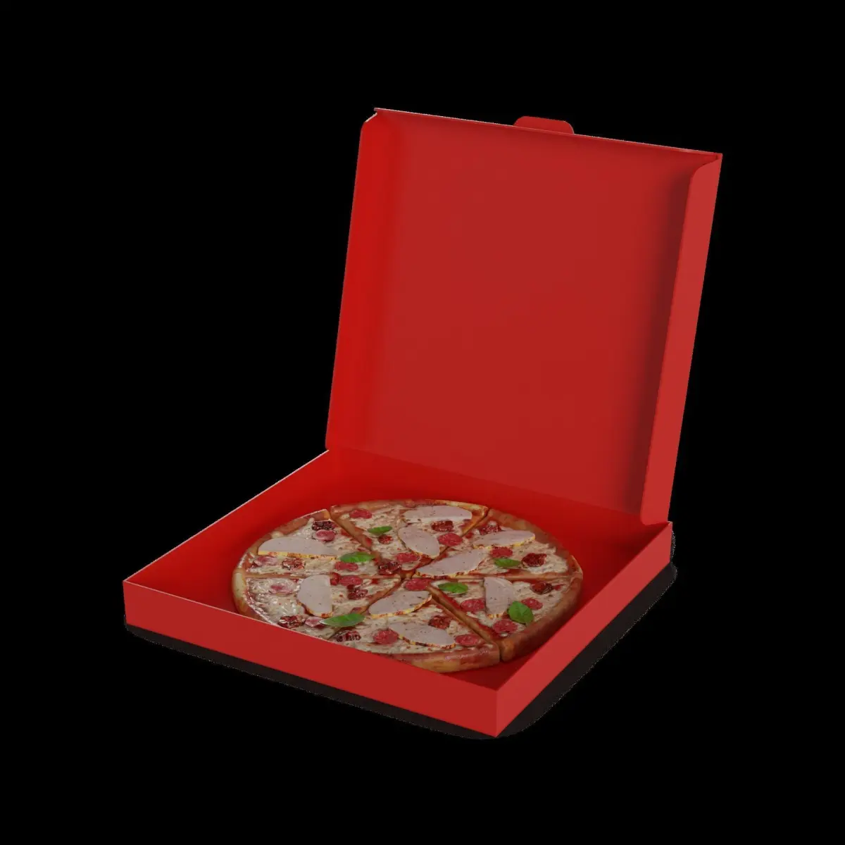 Meat Feast Pizza: Indulge in the savory flavors of our Meat Feast Pizza. This mouthwatering delight is topped with a generous amount of succulent beef, juicy chicken, and smoky pepperoni. Packaged in a vibrant red box, our pizza is sure to catch your eye on the store shelf. The box features a tantalizing image of the pizza, along with the words Meat Feast in bold, appetizing font. Each pizza measures 12 inches in diameter, perfect for sharing with friends and family.