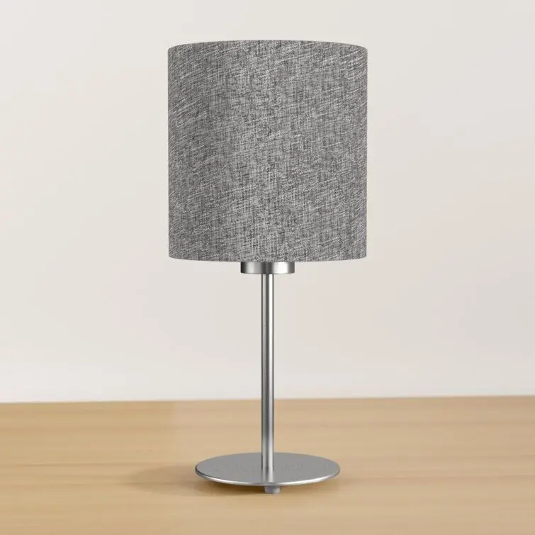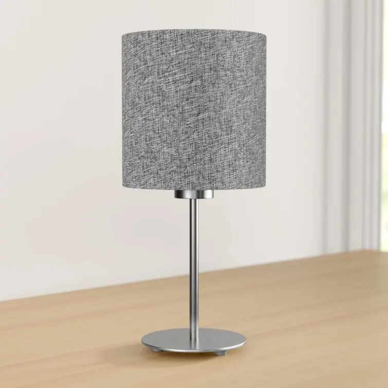 - Ein Leinenton fügt dieser Tischleuchte Textur hinzu. Der glatte Stahlsockel und der zylindrische Trommelschirm der Lampe schaffen eine moderne Silhouette, die gut auf jedem Nachttisch, Couchtisch, Bücherregal oder Sideboard funktioniert. Es ist keine Glühbirne im Preis inbegriffen.