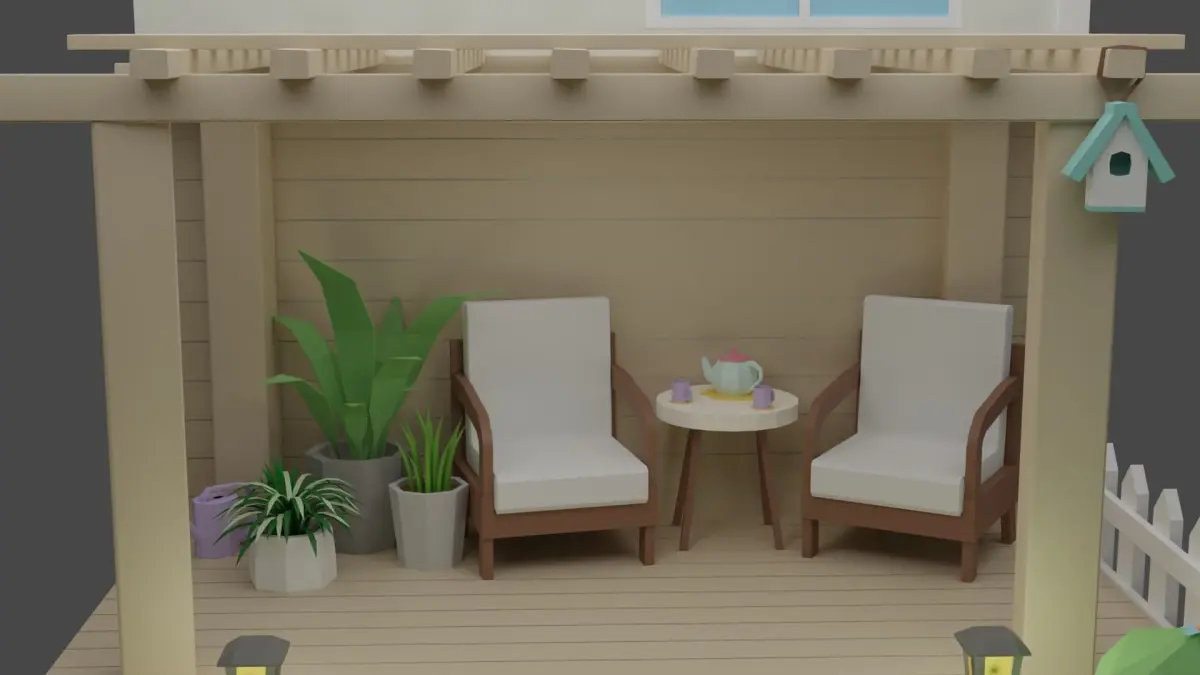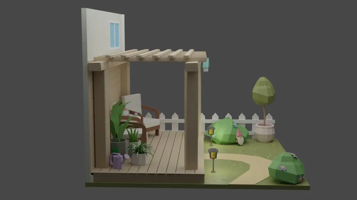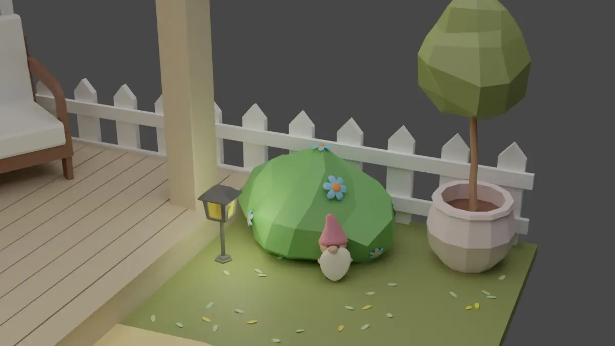 This set includes 18 unique props: gazeebo / gnome / table / plants / lamps / bushes and much more!