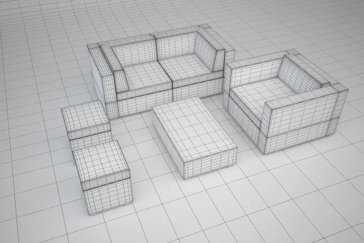 A DETAILED 3D MODEL SET OF PATIO FURNITURE;