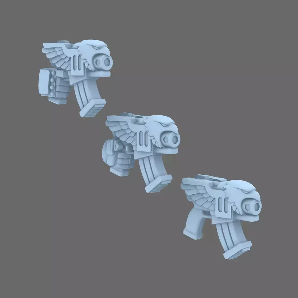 Come check out our Patriotic Knights Eagle Retro Nailer Pistol. These come with intricate 3D designs that make painting a breeze. This item comes with left-, right-, and no-hand options. This product is suitable for your favorite 28mm scale models of Grim Dark-themed Superhuman Armored Warriors of Humanity, like a Prime Master.