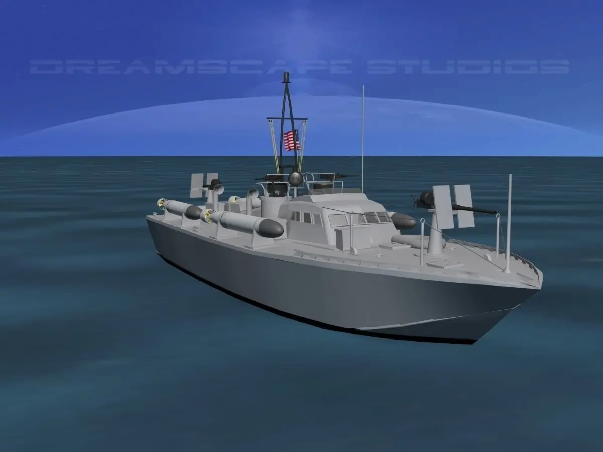 The boat is built near to the scale. It includes a lot of exterior detail including guns, mounts, cockpit, torpedo tubes or torpedoes, depth charges and other elements. Many features are animateable, including guns, mounts controls, rudders, propellers, depth charges and torpedoes (if included). It is fully textured.PT boats were a variety of torpedo-armed fast attack craft used by the United States Navy in World War II to attack larger surface ships. PT is the US hull classification symbol for Patrol Torpedo.