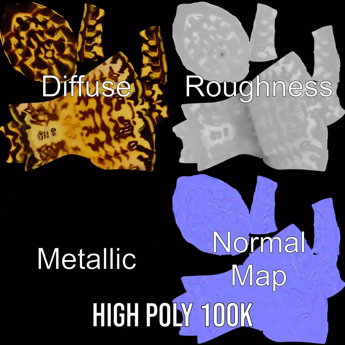 This patterned seashell 3D model pack offers intricate detailing reminiscent of natural shell designs. Each model has 3 levels of detail: low-poly (1000 triangles for mobile), middle-poly (10,000 triangles for environment), and high-poly (100,000 triangles), which allows for the use of this model in production rendering (such as 3ds Max, Maya, Cinema 4D, Blender, Vray/Corona/Cycles and all other), game engines (Unity and Unreal compatible), and interactive presentations, providing a choice of detail based on the LOD system principle. Ideal for beach scenes, educational material, and aquatic-themed environments. The model's textures are PBR, Diffuse, NormalMap, and reflection/roughness/metallic, suitable for any modern rendering engine. All models are accurately unwrapped and have no overlapping UV. All textures are 4096x4096 in size. If you like this model, please leave a like and comment!