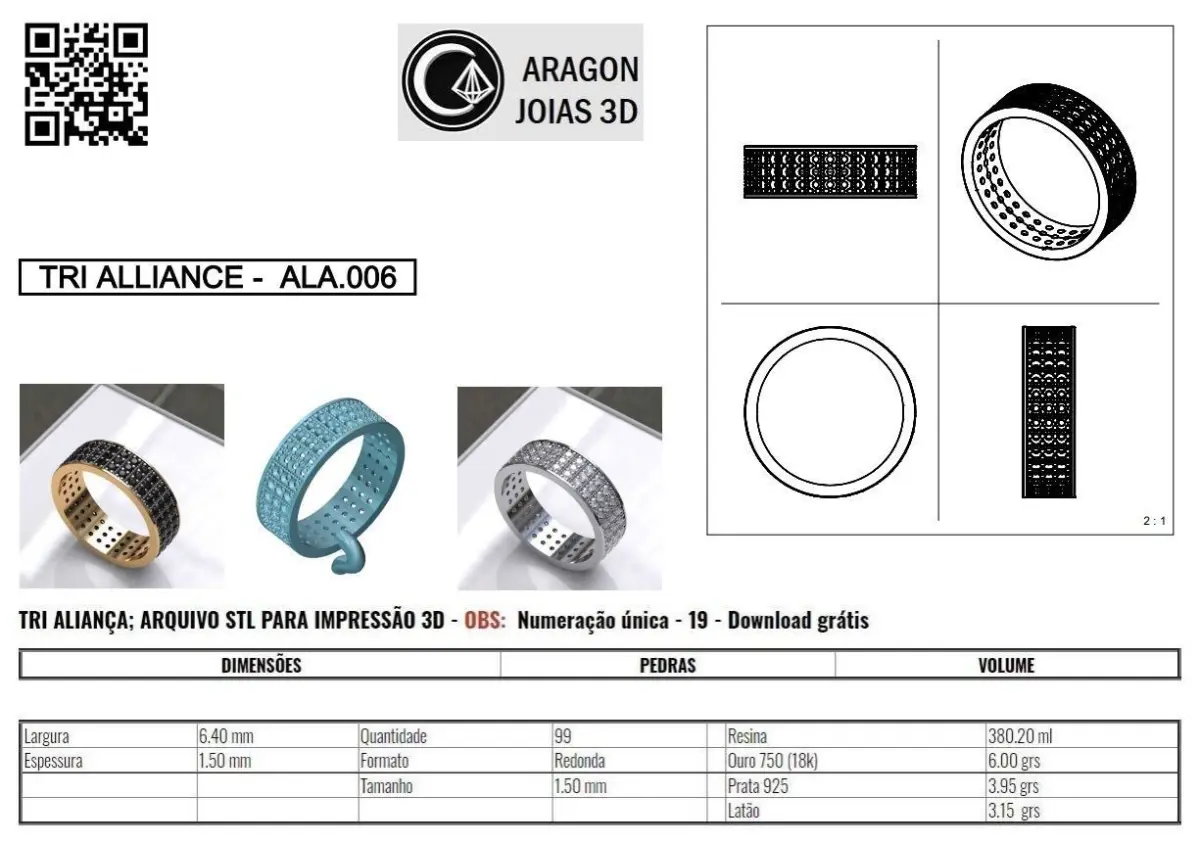 VOLUMESResin - 380.20 mlGold 750 (18k) - 6,00 gramsGold 583 (14k) - 5,15 gramsSilver 925 - 3,15 grams