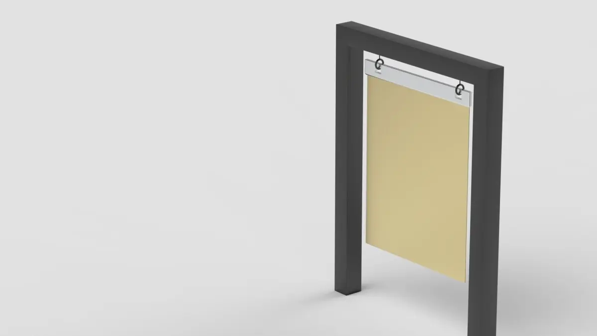 Blank vertical street billboard or big board with city background.