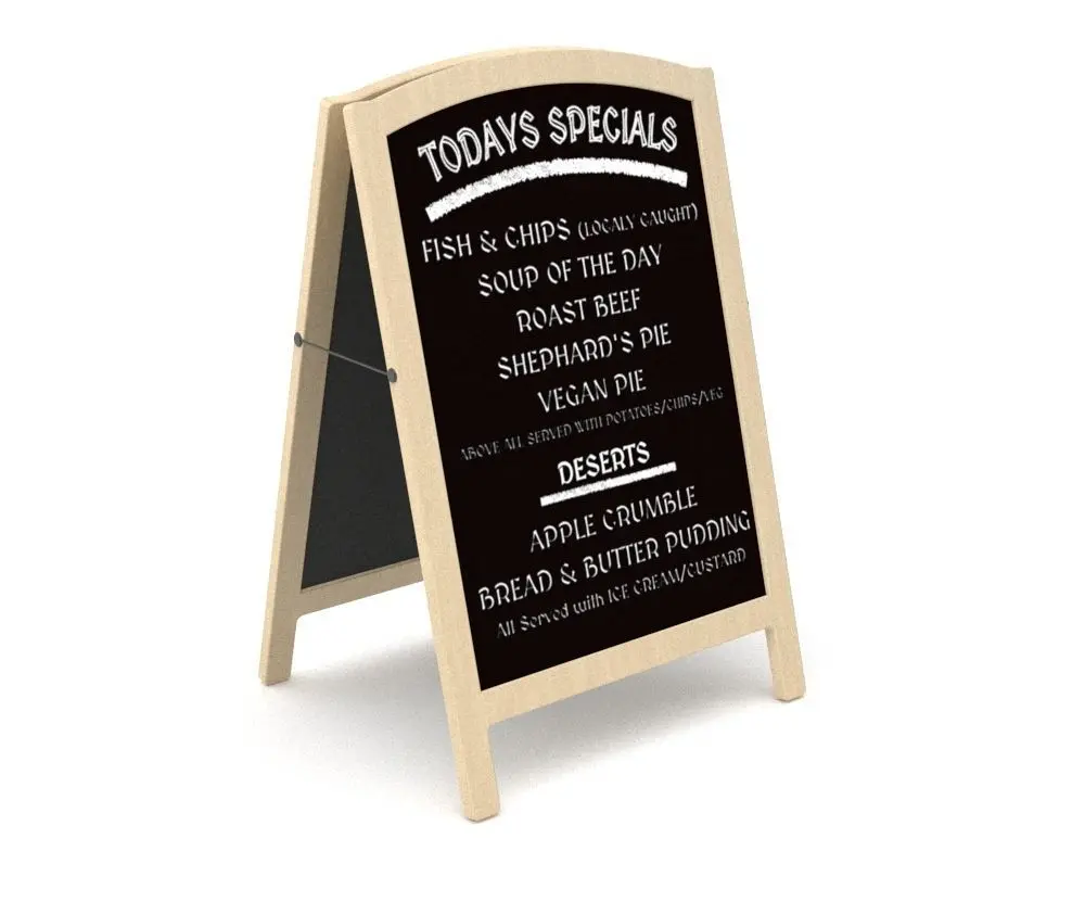 Here we have a simple Pavement Board of the sort you might find outside Cafe's, Pubs & Restaurant. The model is not rigged but can be folded with care by snapping to the centre point of the hinge. The brace or hook can also be rotated.