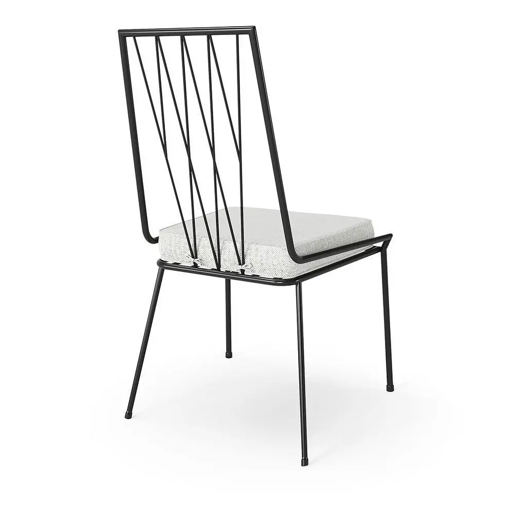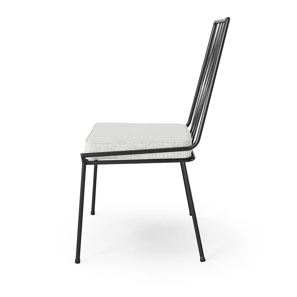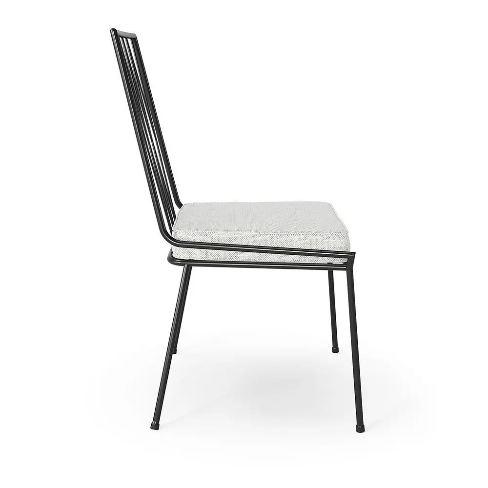 Pavilion Armless Outdoor Dining Chair with comfortable foam cushion and solid iron frame with matte black powdercoat.