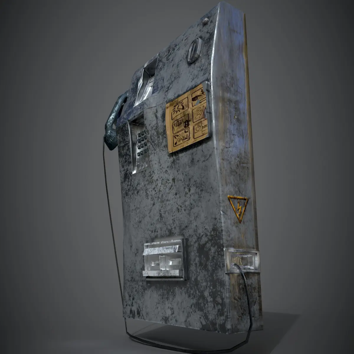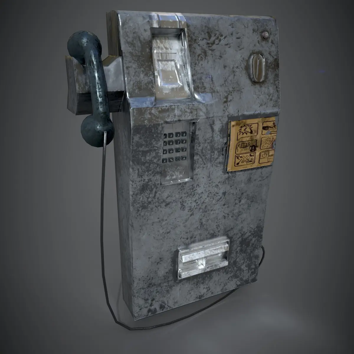 A PBR model of a payphone.Modeled in blender.Textured in Substance painter.Rendered at 1305 samples.Rendering resolution-2k.Textures-2k.Rendering engine-Iray.Poly count- 5230 tris.