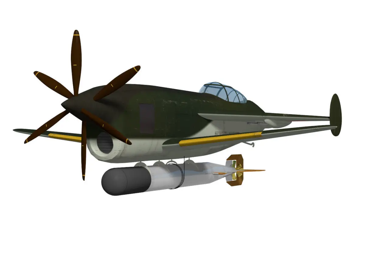 This fighter-bomber was jointly planned by the French company Payan and the Japanese company Mitsubishi Heavy Industries in 1938.It was a paper plan only and the actual aircraft was not built.The model's Landing gear is divided into flight and landing state parts.