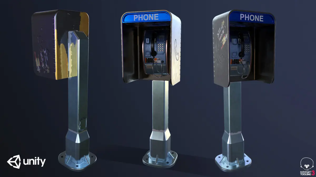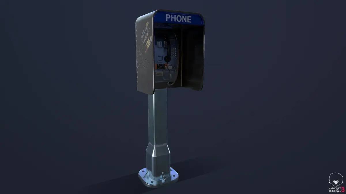This is a 3D model of Game Ready Phone Booth, Ideal for Games, Visualizations, Scene Renderings.
