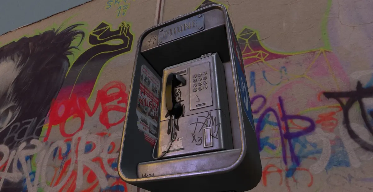 HomeCatalogPayphone - Game Ready pay phone with graffiti on wall Low-poly 3D model